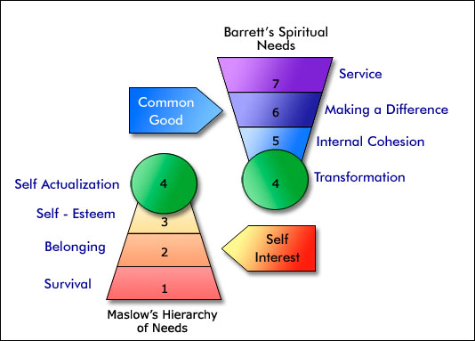 ריצ'רד ברט, בספרו Liberating the Corporate Soul (Barrette, 1998) טוען שחברות מתחסלות פעמים רבות, משום שארגונים שמים דגש על הפן הפיזי – הפיננסי והתפעולי, ומזניחים את ההתפתחות המנטלית, הרגשית והרוחנית. רק איזון ביניהם, ושילוב ביניהם, יכול להביא לחיים, הוא טוען, ומימצאים ממחקריו וממחקרים אחרים מתקפים זאת. את ההתפתחות של הארגון הוא מתאר בשבעה שלבים, במעבר מהרמה הפיזית של הישרדות, דרך הרמות הרגשיות והקוגניטיבות, של שייכות, הערכה עצמית והישגיות, למשמעות, השארת חותם בעולם ושירות לחברה כולה. ההתמרה בהתפתחות הזאת היא בין הדחף לממש את האינטרס העצמי, למעבר, לתמורה אל ראייה רחבה יותר, של טובת הכלל, ראיית הארגון, מטרותיו והאמצעים שהוא נוקט להשיג אותם כחלק מיצירת חברה אנושית טובה ומייטיבה יותר.