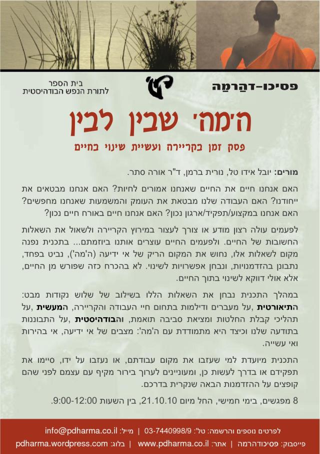 לפרטים – אצלי – ora@setter.co.il , או אצל דנה בפסיכו-דהרמה, 03-7440999, Info@pdharma.co.il