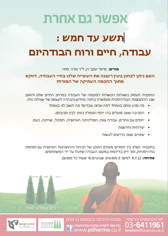 בקיץ הקרוב, אני מעבירה יחד עם פרופ' יעקב רז את התכנית שנקראת "בין תשע לחמש" – על עבודה, חיים ובודהיזם.